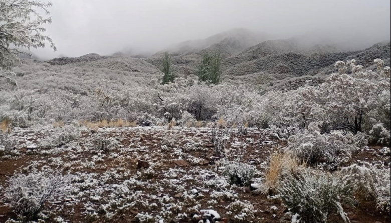 Nieve en Jáchal Después de las lluvias del lunes, Jáchal amaneció con temperaturas muy bajas y nevadas en el Puesto Costa de Pimpa