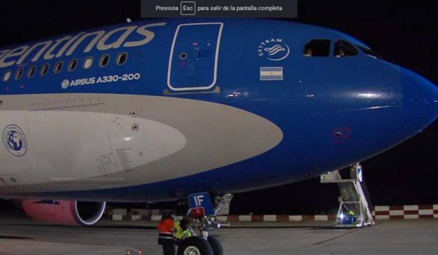 La aeronave Airbus 330-200, matrícula LV-GIF, aterrizó a las 18.50 en el aeropuerto internacional de Ezeiza transportando 768.000 dosis de la vacuna fabricada en China, tras haber despegado desde Beijing ayer a la tarde y hacer una escala técnica en Madrid para reabastecimiento de combustible.