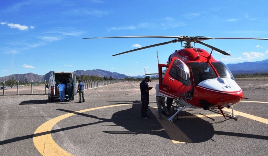 En el acto se puso en funcionamiento el operativo de aeroevacuación, coordinado por Protección Civil y en minutos arribó el helicóptero de la provincia al Aeoroclub de Frontera Jáchal, donde pudieron subir al menor, con asistencia médica permanente, y despegar con destino al hospital Guillermo Rawson para que pueda recibir atención médica más específica.