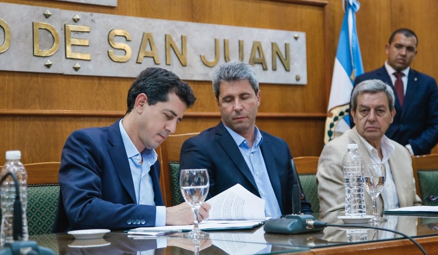 Antes de los discursos, se firmó el acta entre el Ministerio del Interior de la Nación y la Provincia de San Juan para destinar la suma de $ 200.000.000 para la ejecución de nuevos proyectos.