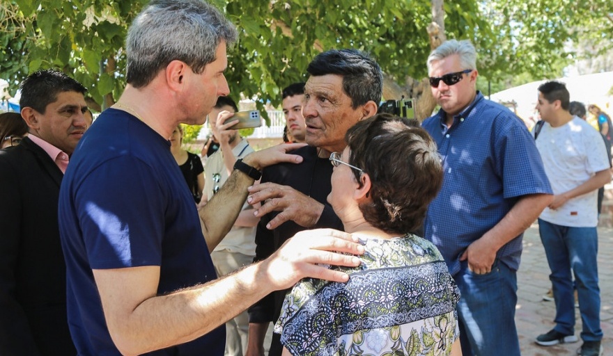 A su llegada, el gobernador destacó la entrega de casas dignas para los beneficiarios de las 800 viviendas en Rivadavia y el operativo de contención a las personas vulnerables, parte de las familias favorecidas.