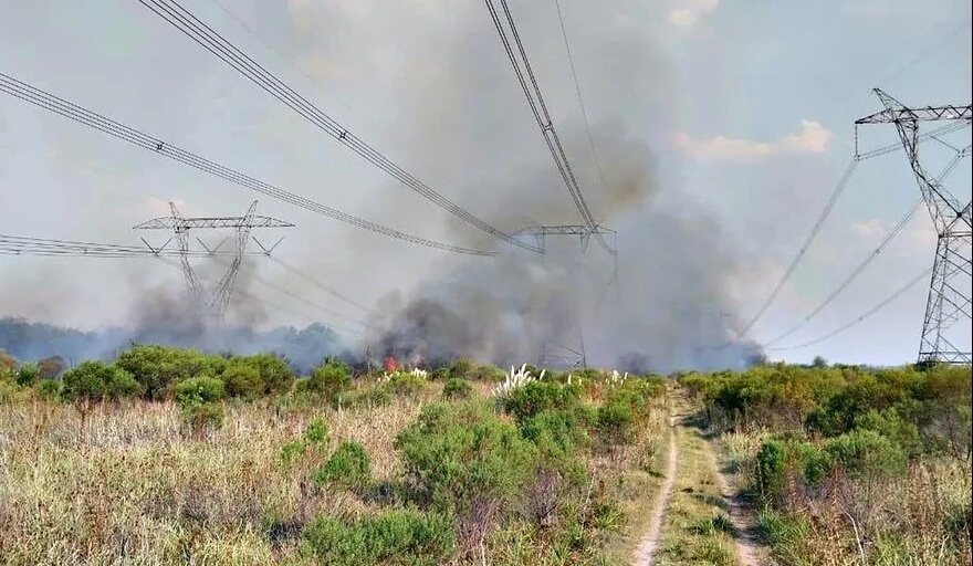 La empresa Transener, que opera la mayoría de las líneas de alta tensión y cuyos accionistas son el Estado y la empresa Pampa Energía, emitió un comunicado en el cual informó que “a las 15:59 horas se produjo la salida de servicio de tres líneas de alta tensión, que vinculan las estaciones transformadoras de General Rodríguez con el área del Litoral, como consecuencia de un incendio de campo”.