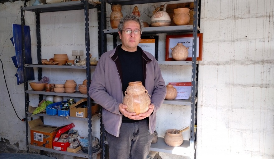 César Salas, ceramista artesanal, nos recibió con humildad y buena predisposición en su taller, un lugar lleno de historia y tradición. César no solo nos abrió las puertas de su espacio de trabajo, sino que también compartió con nosotros su inspiradora historia de vida y el proceso artesanal que fue adquiriendo de su madre, doña Carmen Margot Santana, una artesana de pura cepa de Jáchal.