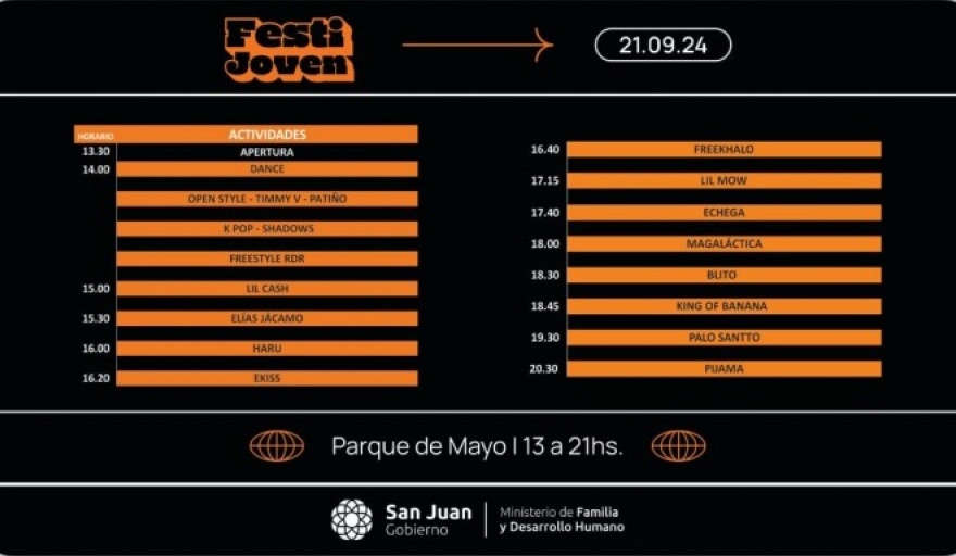El Ministerio de Familia y Desarrollo Humano dio a conocer la grilla de bandas que los jóvenes podrán disfrutar el 21 de septiembre, en el marco del FestiJoven 2024.
