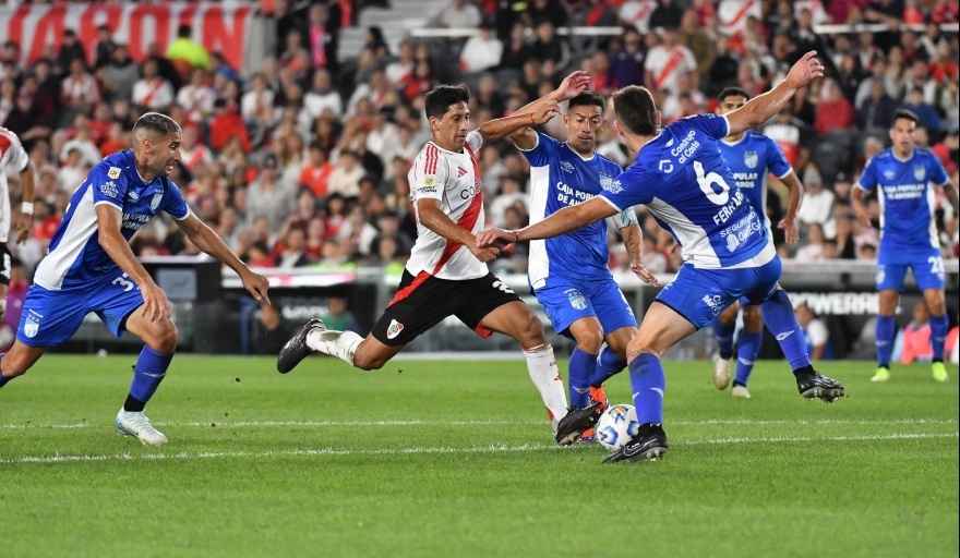 River fue mucho más que Atlético Tucumán en el primer tiempo y antes del minuto tuvo una clara para abrir el marcador con un cabezazo de Colidio que encontró una buena respuesta de Durso, el responsable de que el cero se estirara hasta el descanso.