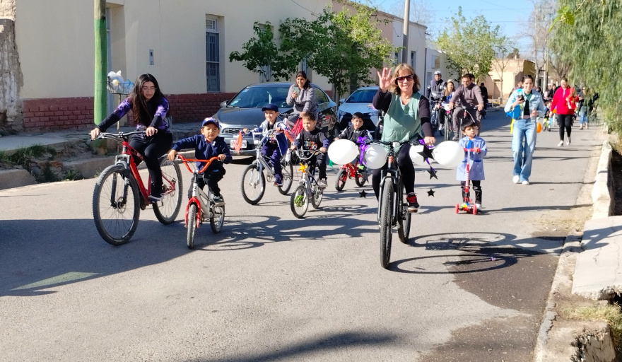 Uno de los momentos más destacados de la jornada fue la caravana de bicicletas de los alumnitos de la Escuela Normal de Jáchal. Con sus rodados decorados con colores y motivos alegóricos a la infancia, los niños recorrieron varias calles del centro del departamento hasta arribar a la plaza, donde fueron recibidos por sus docentes y familias. Esta iniciativa no solo promovió la actividad física, sino también la integración y el sentido de comunidad entre los distintos niveles educativos del departamento.
