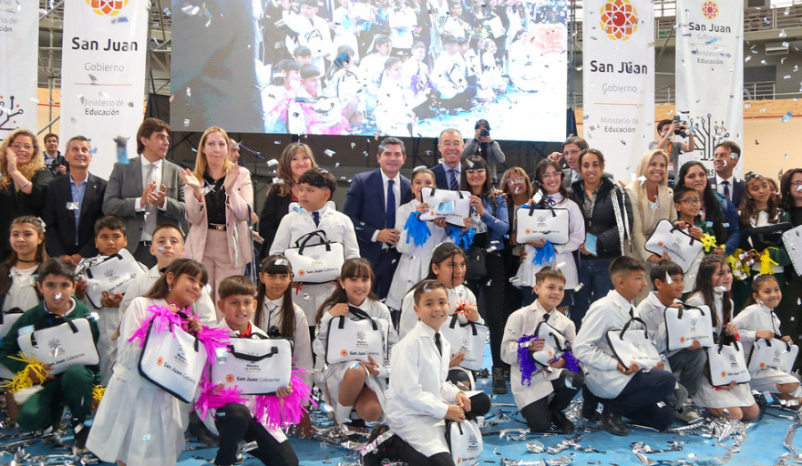 Aunque contamos con menos recursos que gestiones anteriores, en nuestras prioridades siempre están la educación, la salud y la seguridad. Queremos que todos los niños tengan acceso a una computadora y a la escuela sin barreras económicas, con boleto educativo gratuito y con la convicción de que la movilidad social ascendente es posible. La educación es la herramienta más poderosa de todas. Por eso hoy entregamos 25.000 computadoras para alumnos de quinto y sexto grado, y también para docentes, porque sin ellos no hay transformación posible. Unidos, docentes, familias, alumnos y gobierno, hacemos posible un futuro mejor para San Juan”.