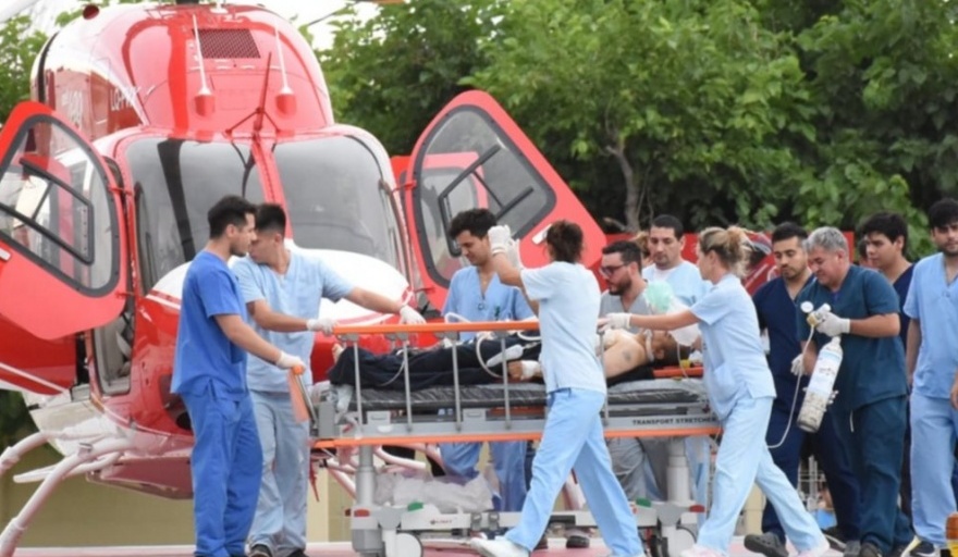 Este mediodía el trabajador sufrió un grave accidente con una de las maquinarias. Después del siniestro los médicos que trabajan en la mina asistieron al herido y lo internaron en el hospital con el que cuenta el emprendimiento. Allí constataron que debido a la gravedad de su condición era necesario el traslado a un centro de mayor complejidad para poder darle una asistencia más profunda.