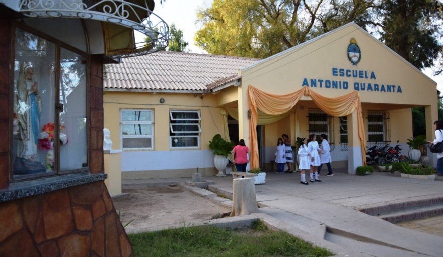 En el día de su aniversario, el pasado viernes 13 de septiembre, hubo poesías-coreografías folclóricas y un video para repasar la historia de la escuela Antonio Quaranta. Idas y vueltas, alegrías y tristezas, encantos y desencantos, como así también sentimientos encontrados surgieron de la proyección del video. Más tarde llego la degustación de la torta aniversario y la actuación del artista Facundo Mateos. También se realizó la presentación de la banda de música del escuadrón 26 Barreal de Gendarmería Nacional y el Dúo Ruarte-Molina.