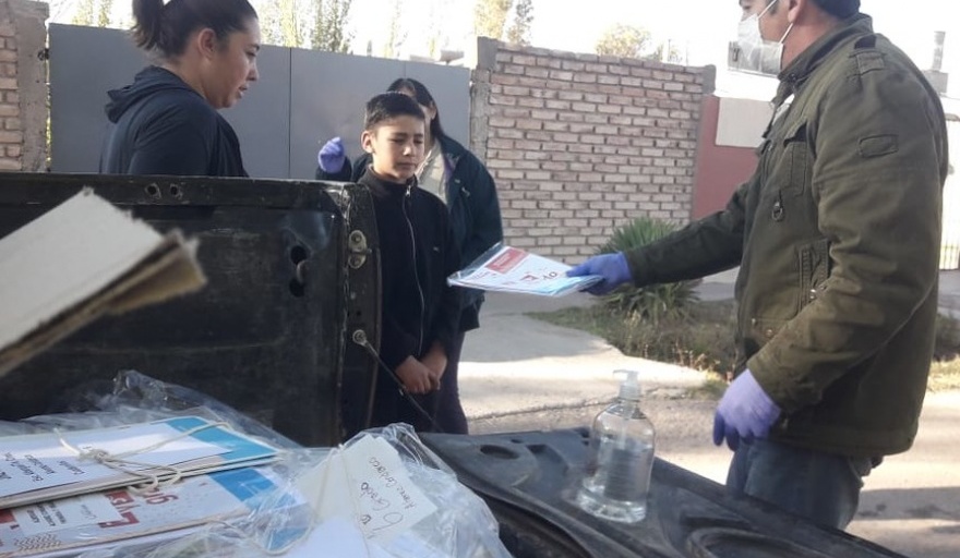 Este viernes a las 6 de la mañana se inició el operativo de distribución en Jáchal, de los kit educativos para alumnos sin conectividad, conteniendo: las guías pedagógicas impresas elaboradas por los educadores locales, los cuadernillos del programa nacional "Seguimos Educando" y un instructivo de prevención sanitaria contra el COVID 19, enviado también por Nación.