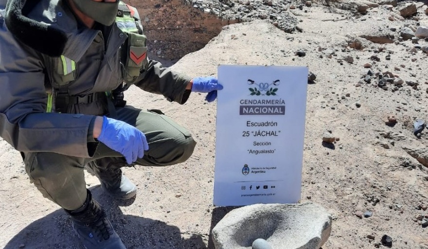 Este sábado, 12 de septiembre- cerca del mediodía, el personal del Escuadrón 25 Jáchal de Gendarmería Nacional realizaba una “Patrulla Ambiental” por Ruta Provincial 430 en la localidad de Angualasto (a la altura del kilómetro 23) y distante unos 100 metros de la calzada constato la existencia de elementos que pertenecerían a la cultura de los Pueblos Originarios que habitaron el lugar entre los años 1200 y 1400.