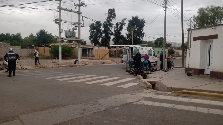 El hecho fue protagonizado por dos motocicletas. Uno de los rodados, una Guerrero 110 color gris, era conducido por un vecino de la zona céntrica de Jáchal. El otro vehículo involucrado, una Motomel 110 color rojo con negro, era guiado por un joven oriundo de San Isidro.