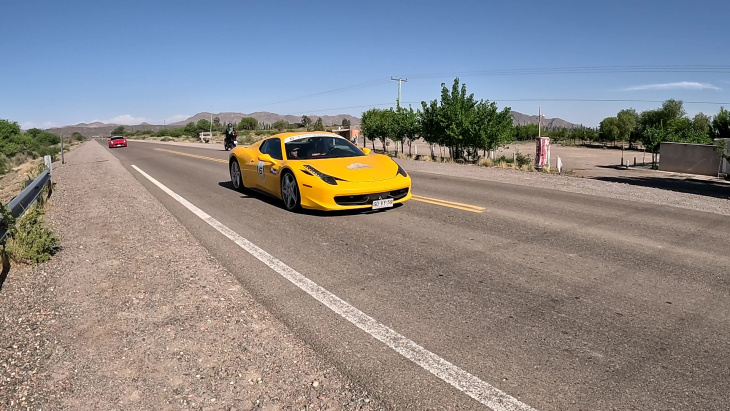 Luego de la sesión fotográfica, el almuerzo y el descanso en el parque, la caravana retomó su marcha por la Ruta Nacional 150, atravesando el pintoresco poblado de Huaco, para continuar hasta la rotonda de San Roque. Desde allí, los autos enfilaron por la Ruta Nacional 40, generando un verdadero desfile de lujo y velocidad que cautivó a los jachalleros que salieron a saludar al costado del camino o desde sus vehículos.