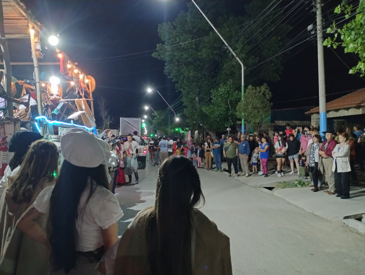 El espíritu festivo se sintió desde las primeras horas de la tarde, cuando los músicos y bailarines comenzaron su recorrido por distintas arterias principales del departamento. Guitarras, bombos y voces se mezclaron con los aplausos de los vecinos que, como cada año, aguardaron el paso de la caravana para sumarse al canto y al baile espontáneo.