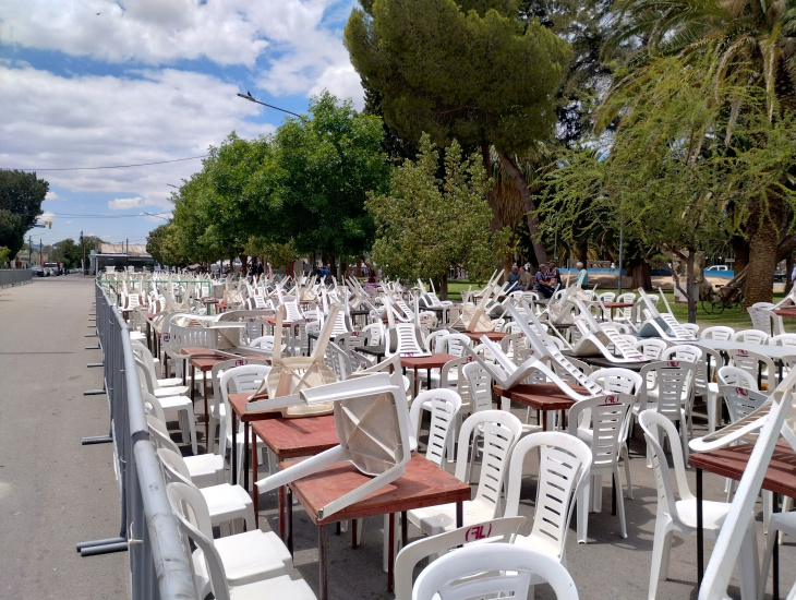 Pasado el mediodía de este sábado 8 de noviembre, la Plaza General San Martín ya mostraba un movimiento incesante de preparativos. Las mesas y sillas en la zona de ranchos se encontraban reservadas en un 90%, señal del entusiasmo popular por el inicio de las noches centrales de la 64ª Fiesta Nacional de la Tradición, uno de los eventos culturales más emblemáticos de la provincia de San Juan y orgullo de todos los jachalleros.