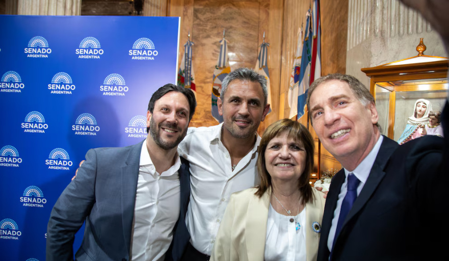 Al igual que en la sesión en Diputados, un gran porcentaje de la mesa política estuvo en el recinto escoltando a la exministra a pedido de la misma. Pasadas las 15, Bullrich recibió en su nuevo despacho al ministro del Interior, Diego Santilli y a los primos Martín Menem, titular de la Cámara de Diputados, y Eduardo “Lule” Menem, el armador de La Libertad Avanza (LLA). También estuvo presente el secretario de Asuntos Estratégicos de la Jefatura de Gabinete, Ignacio Devitt.