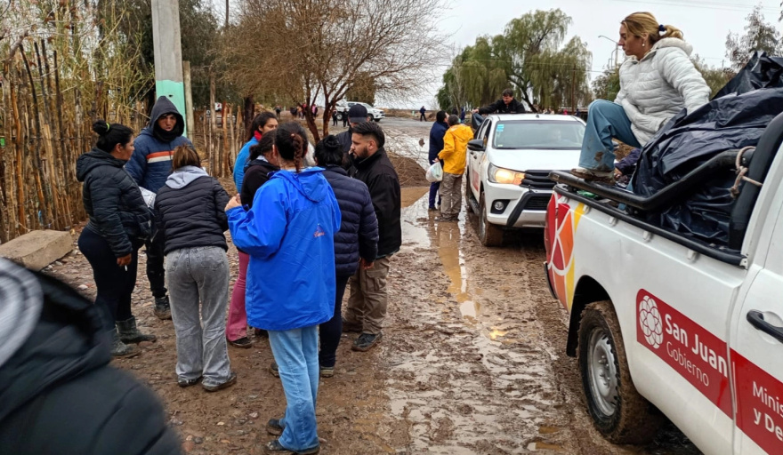 Uno de los departamentos más afectados fue Caucete, donde alrededor de 150 familias recibieron asistencia en los sectores de Lote de Álvarez, Villa Etelvina, El Chasca, Las Talas y Villa Dolores. En esas zonas, el agua acumulada generó importantes complicaciones, obligando a una rápida intervención de los equipos provinciales para atender situaciones de urgencia.