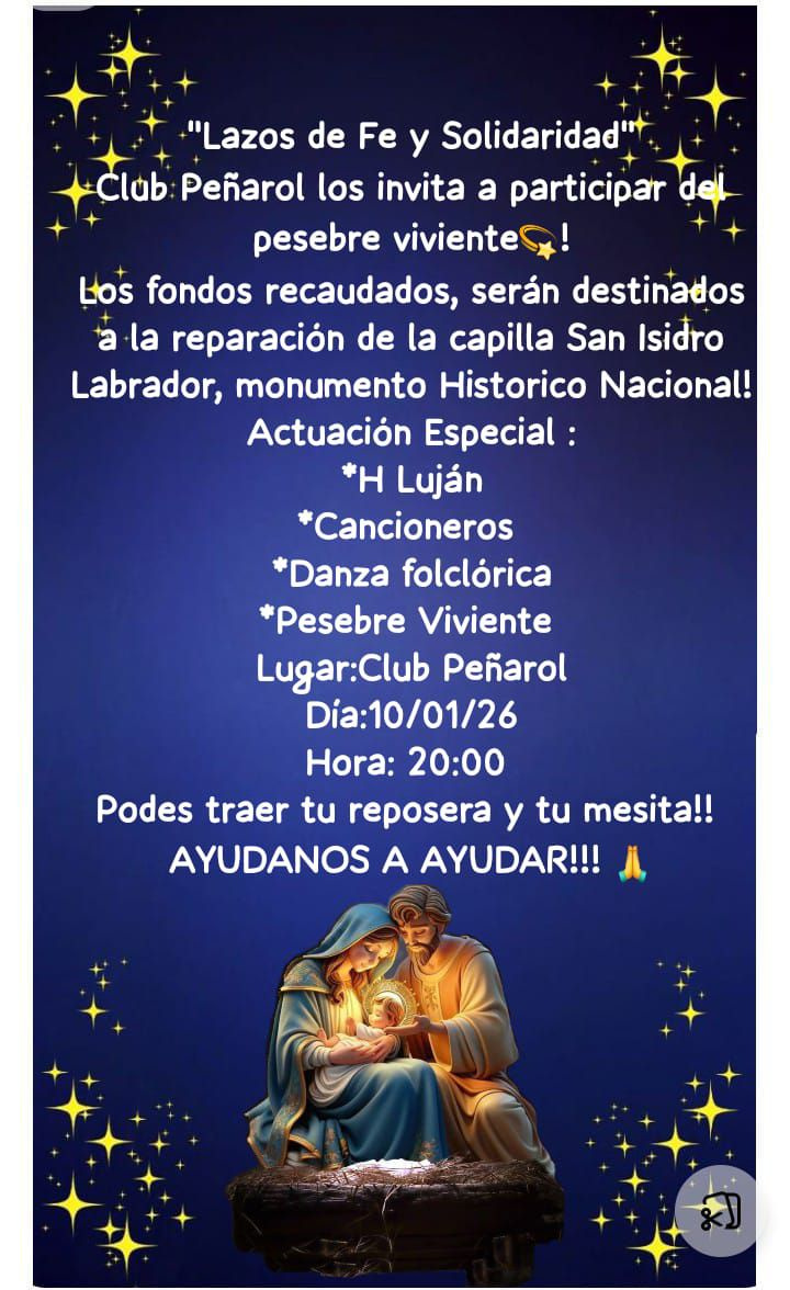 El encuentro tendrá lugar el sábado 10 de enero, a partir de las 20 horas, en las instalaciones del Club Peñarol, y promete una noche cargada de expresiones artísticas, identidad local y un fuerte sentido solidario. Todo lo recaudado durante la jornada será destinado a la reparación de la Capilla de San Isidro Labrador, declarada Monumento Histórico Nacional, un espacio de profundo valor histórico, religioso y patrimonial para la comunidad del norte de Jáchal.