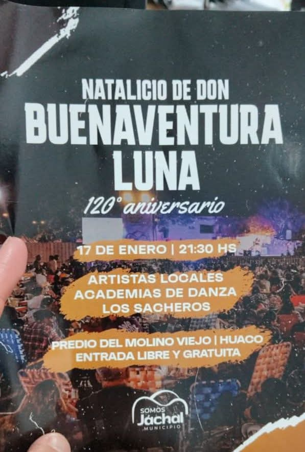 Según confirmaron a Actualidad Jachallera desde la Municipalidad de Jáchal, las actividades conmemorativas comenzarán durante la mañana del sábado 17 de enero con un acto protocolar en la tumba de Buenaventura Luna. Allí se rendirá homenaje a su figura, recordando su vida, su obra y el invaluable aporte que realizó a la cultura argentina y, en particular, a la identidad jachallera.