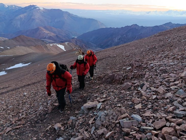 Durante el itinerario, los efectivos recorrieron sucesivas etapas de aclimatación en los campamentos “Laguna Blanca”, “Guanaquitos”, “Cuesta Blanca” y “Pirca de Indios”, puntos estratégicos que permitieron adaptar el organismo al ascenso progresivo y preparar las habilidades necesarias para enfrentar la montaña en altura.