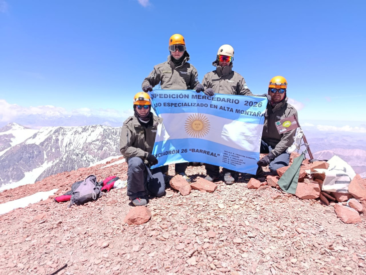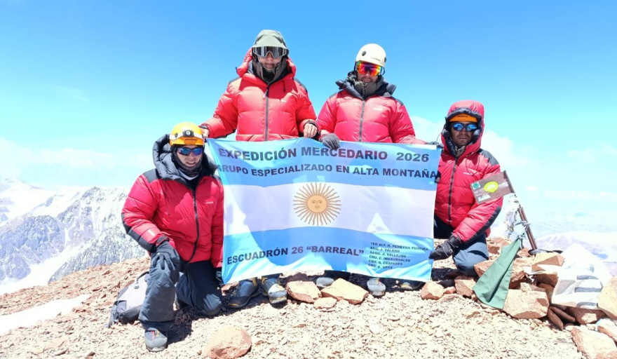 Se trata de una demostración de profesionalismo, preparación física y capacidad operativa, de cuatro integrantes del Grupo Especializado en Alta Montaña (GEAM), unidad dependiente del Escuadrón 26 “Barreal”, quienes alcanzaron una altitud de 6.720 metros sobre el nivel del mar durante una expedición de entrenamiento realizada en el Cerro Mercedario.