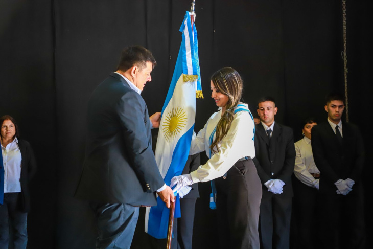 En lo que respecta a la Bandera Nacional, la responsabilidad de portar el máximo símbolo patrio recayó en Flavia Daiana Olivares como abanderada, acompañada por Gabriela Cataldo como primera escolta y Braian Marcos Báez como segundo escolta. Como escoltas suplentes fueron designados Johana Tejada y Mauro Ruarte.