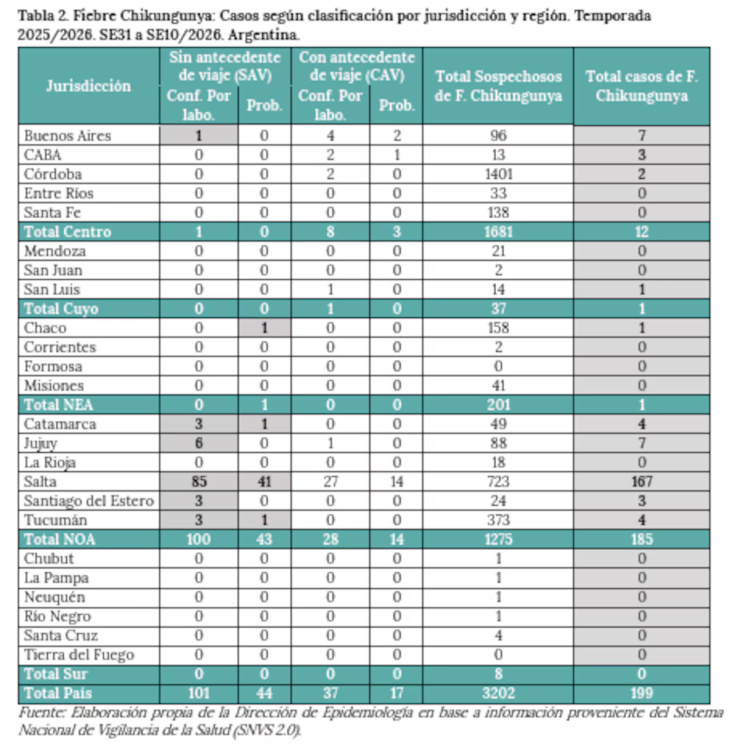 Sin embargo, la detección de brotes autóctonos en Salta, Santiago del Estero y Tucumán señala un cambio en el patrón de transmisión y refuerza la preocupación por la circulación local del virus en varias provincias.