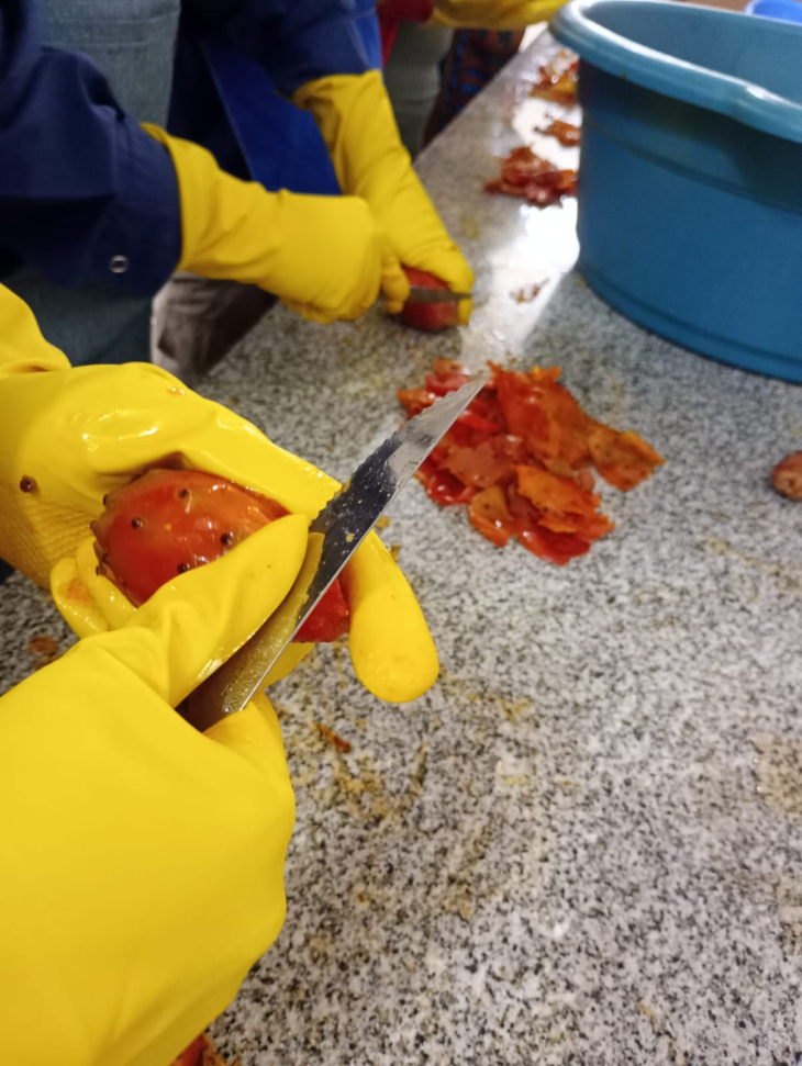 El proceso no fue sencillo. La presencia de espinas y pequeñas partículas (puques) implica riesgos en su manipulación, por lo que el equipo debió investigar, capacitarse y diseñar un procedimiento seguro. Además, se trabajó de manera articulada con un productor provincial que ya tenía experiencia en el tratamiento de esta fruta.
