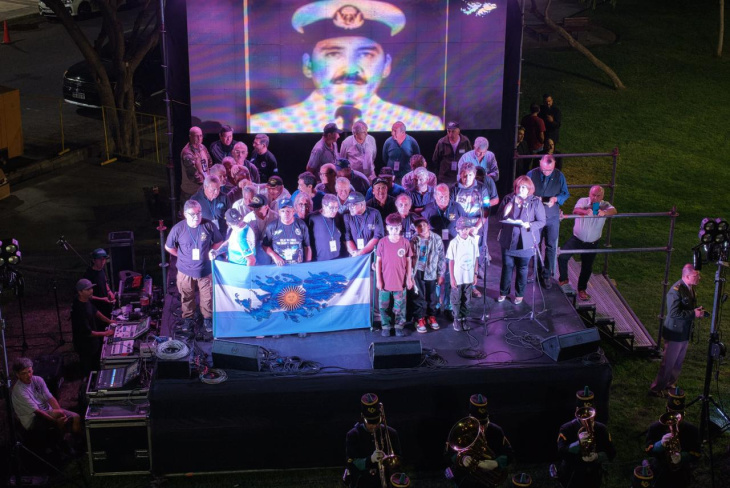 El momento más emotivo de la noche llegó cuando el reloj marcó las doce. En ese instante, el público reunido en el Monumento a los Caídos se unió en la entonación del Himno Nacional Argentino, seguido de un minuto de silencio en memoria de los 649 soldados argentinos que perdieron la vida durante la guerra.