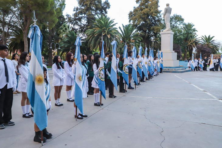 Las banderas escolares flamearon con orgullo frente al monumento y al público presente, recordando que el legado de Malvinas no pertenece únicamente al pasado, sino que continúa transmitiéndose en cada acto educativo y en cada gesto de identidad nacional.