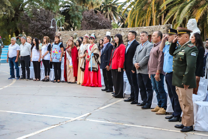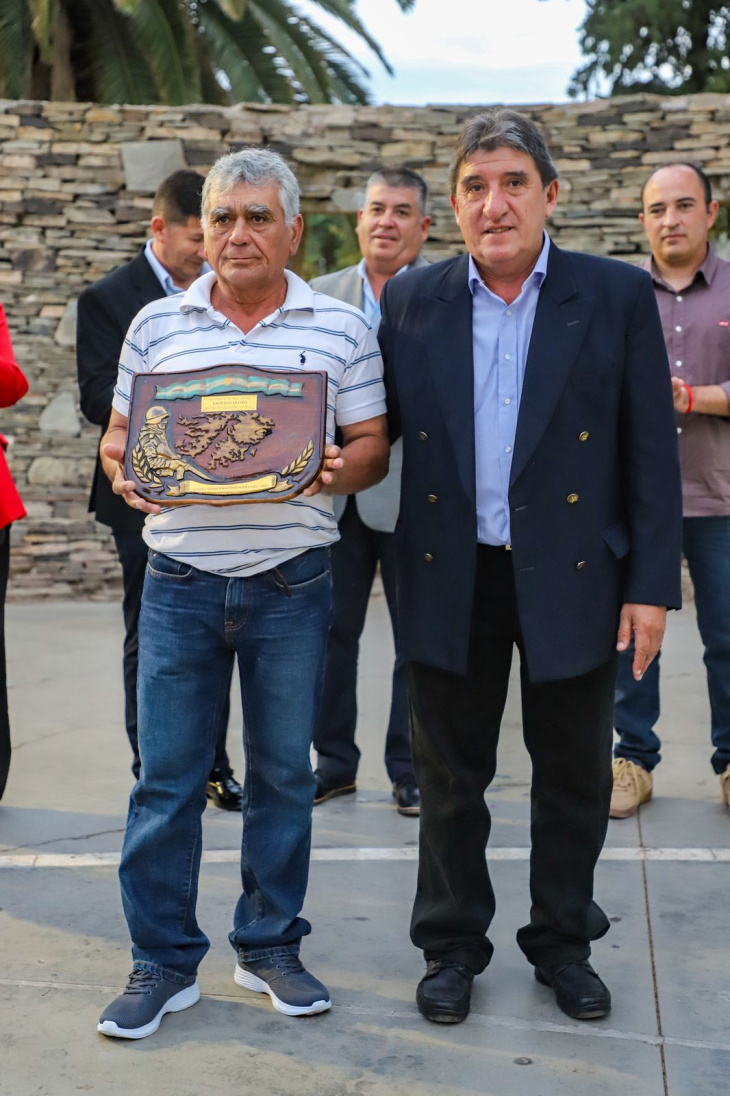 Durante el desarrollo del acto se realizó un sentido reconocimiento a los veteranos jachalleros Ernesto Tejada y Miguel Neira, quienes fueron homenajeados por su valentía, su entrega y su compromiso en defensa de la Patria.