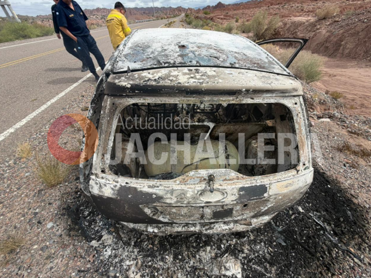 Según informó el comisario Fernando Villalba, titular de la Comisaría 21 de Jáchal, el siniestro se produjo cuando el vehículo comenzó a incendiarse repentinamente mientras circulaba por la ruta. Las llamas se propagaron con rapidez y en pocos minutos envolvieron por completo la movilidad, que terminó prácticamente destruida.