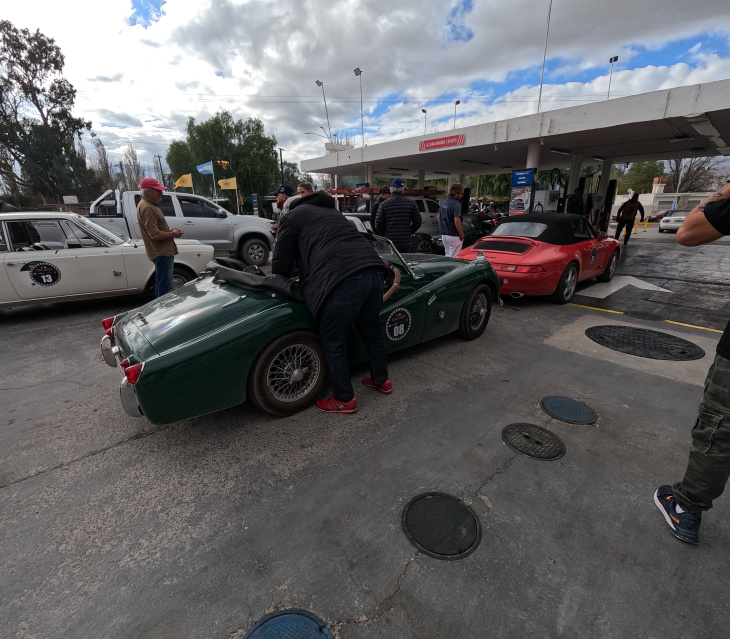 El paso por Jáchal tuvo un carácter estratégico dentro del recorrido, ya que el departamento fue una parada obligada para la recarga de combustible antes de continuar viaje. Durante varios minutos, los autos clásicos permanecieron en la zona mientras los pilotos y equipos técnicos realizaban las tareas necesarias para seguir adelante con la exigente travesía.