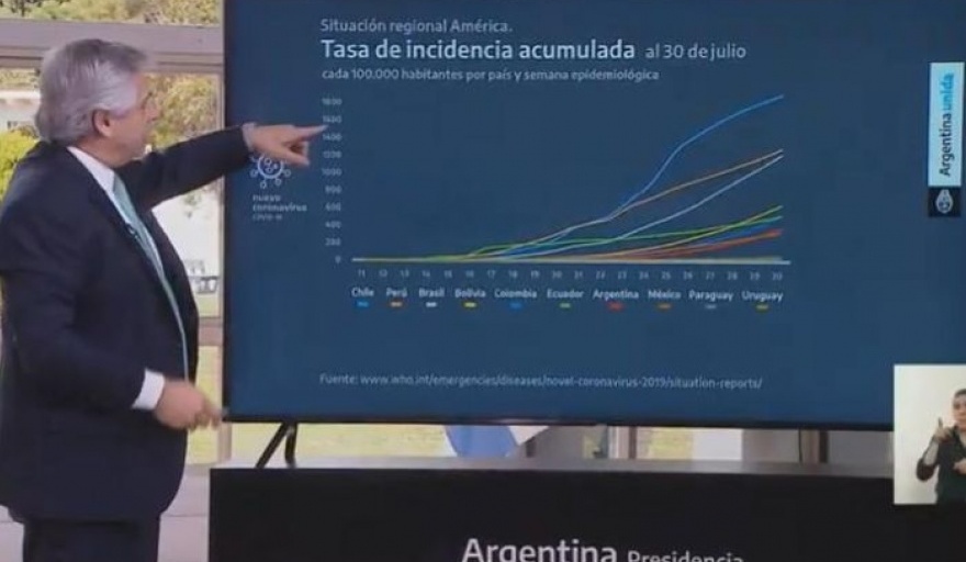 Con el área metropolitana controlada y con una leve tendencia de contagios a la baja, parte de la exposición de Alberto Fernández estará centrada en lo que ocurre en algunas provincias. Si bien la situación no es de alarma, sí hay una fuerte preocupación por los brotes en Mendoza, Tucumán, Santa Fe, Córdoba, Neuquén y Tierra del Fuego.