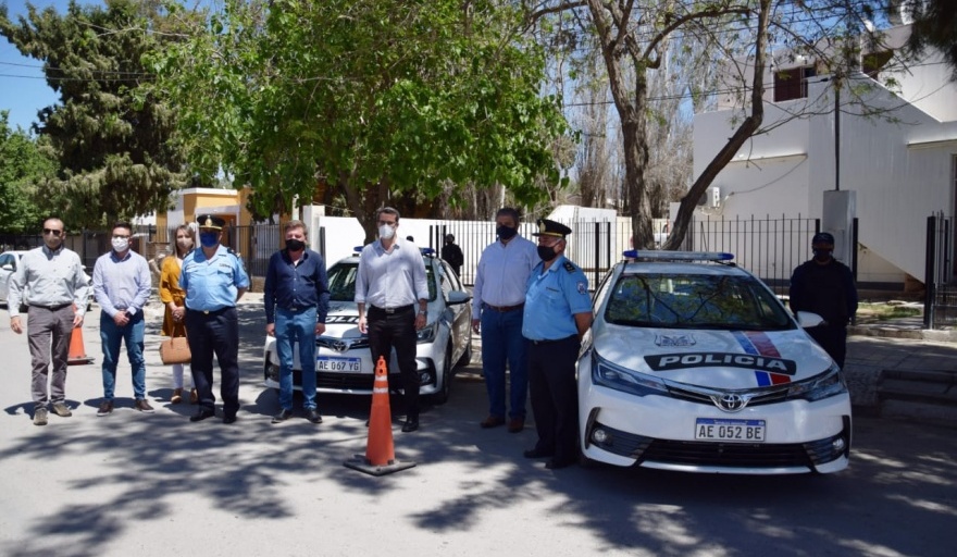Más tarde se dirigieron al edificio de la Comisaría 21 de Jáchal, para realizar la entrega de dos nuevos patrulleros y dos motos, con el objetivo de reforzar el plan de seguridad en el departamento. Allí fueron recibidos por el comisario inspector Ramón Carrión a cargo de la “Departamental Nº 4 Norte”, el comisario Vicente Ariel Álvarez y el subcomisario Ceferino Reyna. Además de la entrega de movilidades también se proporcionaron computadoras y unidades operativas móviles para cumplir funciones en territorio.