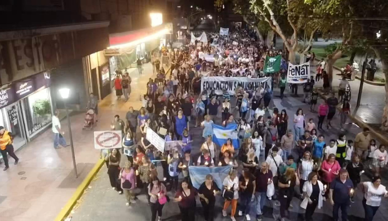 Reclamo salarial en las calles Se realizó una marcha de antorchas en la Plaza 25 de Mayo con docentes y otros gremios que reclamaron avances salariales